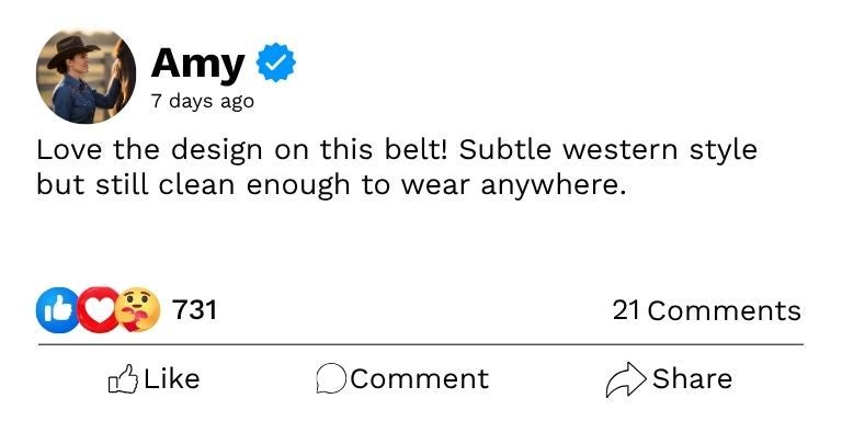 Belt uses an adjustable buckle that lets you size it perfectly to your waist. No guessing, no wrong sizes. Just one size that fits every man & woman.